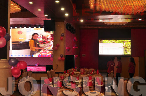 LED大屏幕幕安裝不到一個月,但公司專業的技術團隊到酒店指導安裝,并培訓企業員工,讓他們了解到LED技術,能夠應用自如的操控好畫面轉播、視頻播放,相信杰豪大酒店的迎新晚會一定充滿無限精彩。