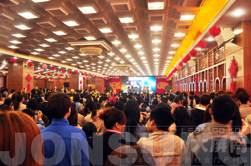 中祥創(chuàng)新綜合報(bào)道:1月16日下午,在廣東深圳市山海天海鮮大酒樓,賓朋滿座、演出大舞臺(tái)上熠熠生輝,某大型企業(yè)的年終表彰大會(huì)暨迎新晚會(huì)正在這里舉行,舞臺(tái)上的演員們正在大跳企業(yè)版的《江南style》和來(lái)自韓國(guó)組合H·O·T曾紅極一時(shí)的舞蹈《we are the future》,動(dòng)感的節(jié)奏伴隨著演員們舞動(dòng)的身體,中祥創(chuàng)新P4室內(nèi)高清LED大屏幕幕發(fā)揮出最閃耀的光輝,讓在場(chǎng)一千多名企業(yè)員工歡呼喝彩。