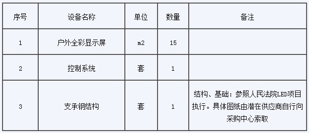 室外全彩三合一LED顯示屏數量:1塊,面積約為15平方米(以成品模塊為單元設計,面積大于或接近15平米)。技術要求、結構、外型見招標文件。安裝地點:縉云縣實驗中學大門口。采購預算:13.5萬元。