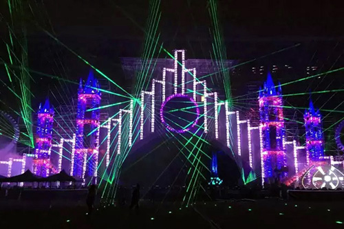 在去年高水準的基礎上,今年的數(shù)字舞美設計再次全面升級。不僅舞臺主景搭建了華麗的金屬鐘樓,現(xiàn)場還將布景、燈光與LED屏融為一體,打造出了“哥德的花園”,力求給觀眾帶來最震撼的視覺體驗。同時,綠色環(huán)保、可循環(huán)利用也是今年跨年舞臺的另一大亮點。設計師此次摒棄了以往耗資巨大的景物制作,通過現(xiàn)有材料的重新組合和構架,搭建出了氣勢磅礴的古堡。