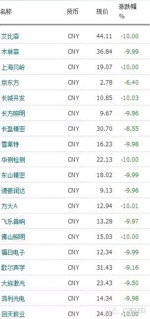 截至剛才14:45,LED概念股一片慘狀。如下圖。