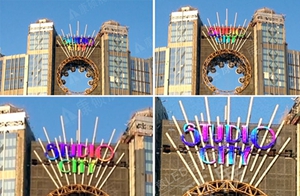 項目介紹:康碩展電子為澳門“STUDIO CITY”制作的視頻標識,每一個字母區域為led顯示屏制作,字母以外區域完全鏤空,面積達一百四十余平方,不僅能顯示商家的LOGO,還能播放視頻,根據需求播放廣告等內容,極大的提升了企業的商業價值。該視頻標識摒棄了傳統發光字的做法,采用顯示屏的做法,較常規箱體式led顯示屏節能達60%以上,重量輕,維護簡易,高標準工藝處理,顯示屏亮度高,產品防護等級高達IP65,能完全適應各種惡劣氣候,并且可以遠程控制,適應戶外長期使用等。該標識極大的吸引人的眼球,讓建筑成為城市新地標。