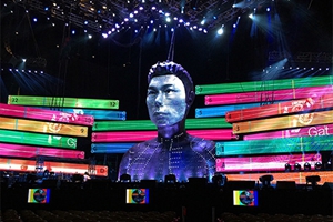 2015年,LED模組異形拼接技術發展迅速,推動LED顯示產品在建筑景觀、舞臺美術、旅游博覽、酒吧夜店等創意顯示應用領域遍地開花。