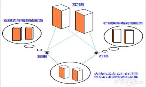 視差原理指的是人們通過右眼和左眼所看到的物體的細微差異來感知物體的深度,從而識別出立體圖像。因此在觀看影視畫面時,只要準備好拍攝位置稍微錯開的兩組圖像,分別供“右眼”和“左眼”觀看,便可以看到一組具有立體感的畫面。