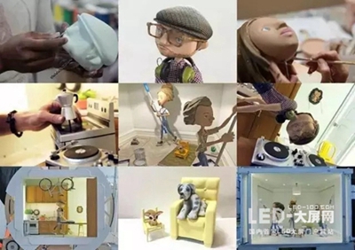他們將Lowe's在Vines上發布的短視頻中的形象做成了真正的實物。這些人偶雕塑和特制的小道具被放置在門店外墻的櫥窗中,它們通過電機的引導而運動。