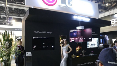 在InfoComm China 2016上LG展示了雙面Oled顯示屏解決方案
