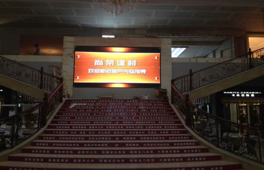山西省太原市榮尚建材市場二樓P4高清led顯示屏由深圳市華夏光彩股份有限公司承建,華夏光彩led顯示屏制造廠家生產的P4顯示屏憑著選材優質,播放效果高清、色彩還原性好等優點讓所有客戶震驚。