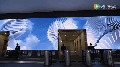 舊金山市SalesForce公司大樓大廳,創(chuàng)意團隊用一道107英尺長的LED視頻墻,將冰冷的建筑墻改造為超現(xiàn)實的神奇環(huán)境,它讓經(jīng)過這道墻的辦公者,有一種進入一個迷人的超現(xiàn)實環(huán)境的感覺。