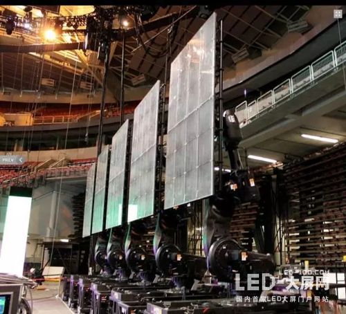 目前,幾乎所有舞臺上的led顯示屏都是固定安裝在墻面或結構上,即使有的LED屏可隨結構變換位置,往往也都是簡單的一維動作。隨著機械臂在演藝領域的普及,led顯示屏可以在機械臂的掌控下隨意飛行、拼接、拆分、旋轉,形成舞臺上空各種造型的LED背景顯示。
