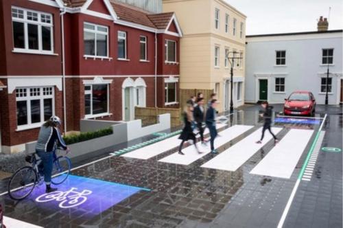 英國新型LED路面可提示司機和騎車者有行人通過