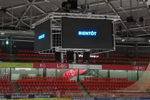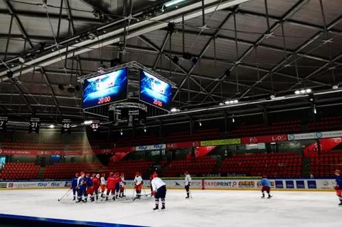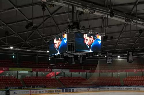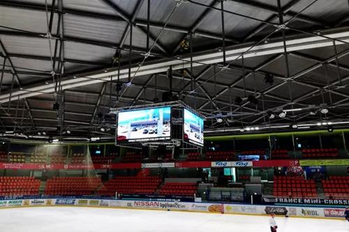 10月27日,在法國格勒諾布爾,XMOZU LED吊斗屏成功點亮了法國冰球賽場!