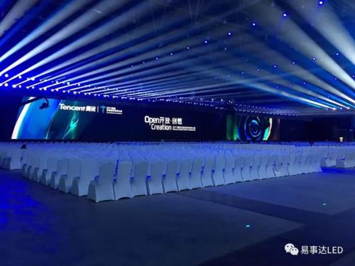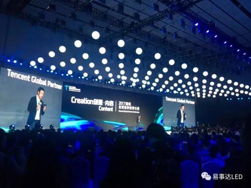 本次大會的精彩不止于以上種種,led顯示屏同樣成為大會的亮點。整個會場被LED屏包圍,流光溢彩,熠熠星輝,科技范十足,再配上“2017騰訊全球合作伙伴大會”的主題“開放· 創想”,打造出了一場無與倫比的LED屏科技視覺盛宴。