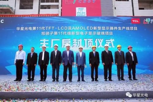 深圳市經貿信息委副主任胡曉清,深圳市發展改革委副主任徐智東,光明新區管委會副主任胡汝林,旭硝子株式會社執行役員電子公司顯示器事業本部長鷲之上正剛,TCL集團董事長兼CEO、華星光電董事長李東生,華星光電CEO、華星光電半導體總經理金旴植,以及股東方代表,銀團代表,參建單位和旭硝子,華星光電的員工代表共300余人出席封頂儀式。儀式由華星光電副總裁金松主持