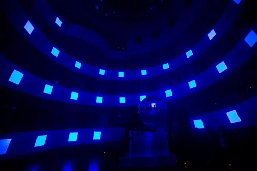 將客人帶入一個全新的,改造過的空間中,以照明系統為主的一個設計,包含了50個搖頭光束燈和20平方米的LED屏幕,每個屏幕分成50cms的小模塊放置在整個結構表面