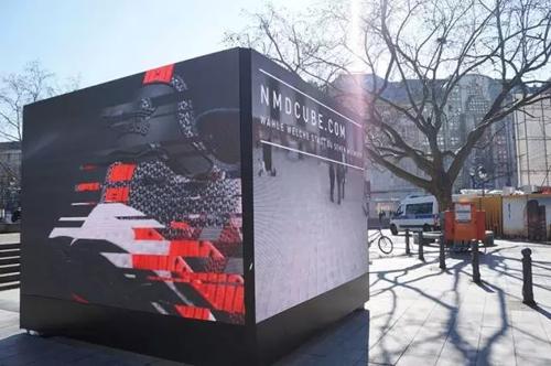 大型交互式LED裝置,放置在歐洲各個城市,立方體的主要目的是推廣新款鞋子