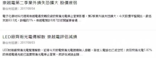 關于齊瀚光電解散的問題,其股東之一崇越電通也對外證實齊瀚光電確實已停止營業,將對其進行評估,以減小金額損失。