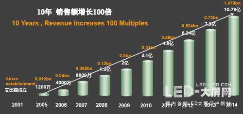 作為led顯示屏行業的傳奇之一,艾比森曾創下10年銷售額增長100倍的紀錄,率先在行業內突破10億大關,曾達成了六個“第一”——顯示屏行業銷售第一、行業出口第一、顯示屏行業利潤第一、行業現金流第一和行業周轉率第一。
