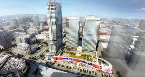 該項目位于洛杉磯市中心L.A. Live開發(fā)區(qū)的泛海廣場(Oceanwide Plaza),由三棟高層塔樓、七層的裙房構(gòu)成,總建設(shè)規(guī)模愈24萬平方米,總投資約12億美元。項目匯集奢華五星級酒店、高檔購物中心及精品公寓等功能業(yè)態(tài)。