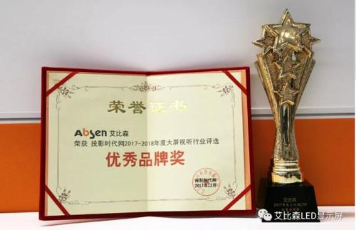 艾比森 2017-2018年度大屏視聽行業“優秀品牌獎”