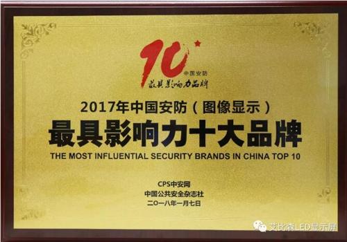 艾比森 2017年中國安防(圖像顯示)最具影響力十大品牌