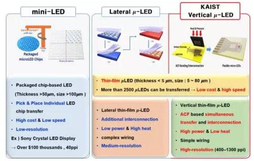 圖1.μ-LED(Micro LED)技術比較(Image:KAIST)