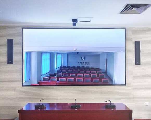 濟(jì)南高新區(qū)管理委員會視頻會議室應(yīng)用Voury卓華ZHVW-140微間距黑珍珠系列led顯示屏拼接而成,Voury卓華微間距大屏幕系統(tǒng)將本地會場圖像和遠(yuǎn)程會場畫面進(jìn)行清晰的畫面還原,并結(jié)合大屏幕拼接圖像處理技術(shù)融合技術(shù),使會議雙方與會者感覺如在同一會議室,實現(xiàn)了高臨場感的遠(yuǎn)程會議體驗,滿足政企日常會議,實現(xiàn)及時溝通、高效運作。