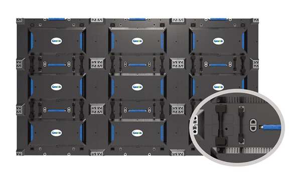 積木式拼接,嵌入式連接器,箱體背部無電源信號孔位,整屏拼裝更整潔。