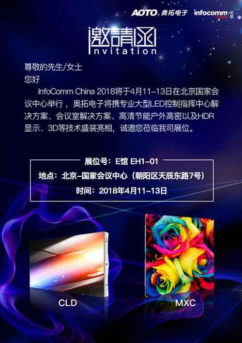 屆時,奧拓電子將攜專業大型LED控制指揮中心解決方案、會議室解決方案、高清節能戶外高密以及HDR顯示、3D等技術盛裝亮相,展示最前沿的業內技術,帶您感知LED顯示的現在與未來,歡迎新老客戶蒞臨我司展位EH1-01。