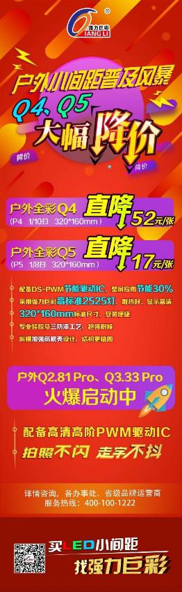 驚蟄過后,萬物漸漸復蘇,鮮花、綠草接連盛放,鳥雀、蜂蝶匆匆奔忙,到處都是春滿人間。在如此美妙的春天,怎能錯過和強力巨彩戶外小間距的盛大約“惠”呢!強力巨彩戶外小間距掀起普及風暴,Q4、Q5大幅降價“惠”動全國,只為給您美麗約“惠”!