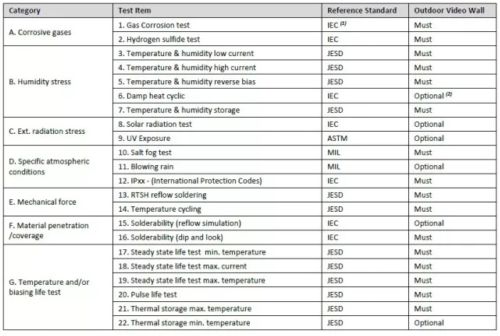 圖9 歐司朗光電半導體對于戶外顯示屏應用的LED產品的測試規范