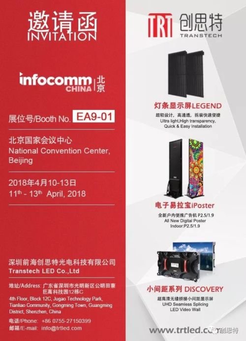 創思特將攜Legend傳奇系列燈條屏、iPoster系列云屏、Discovery發現系列小間距及裸眼3D廣告機參加本次展覽。