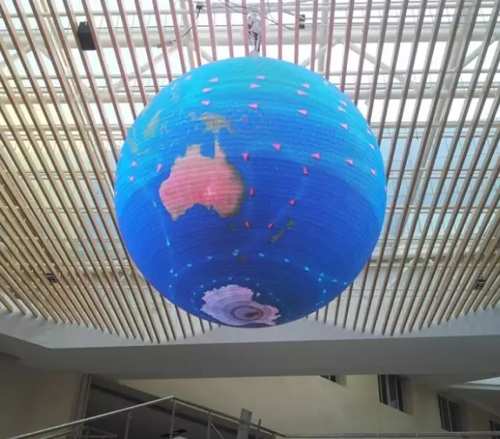 可以在周圍任何角度進(jìn)行觀看,擺脫了傳統(tǒng)平面顯示屏的觀感,適合安裝在酒吧、酒店或者商業(yè)地產(chǎn)的中庭位置,能夠給觀眾全新視覺體驗。