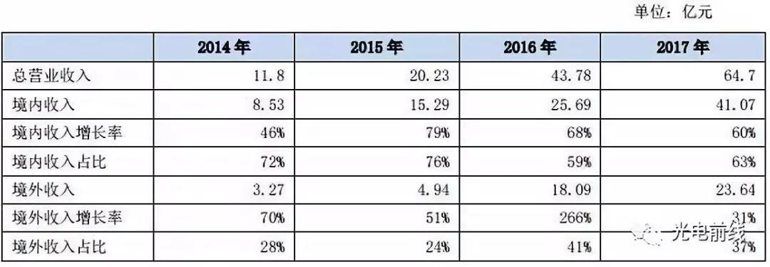 海外市場實現簽單約14.62億元,同比增長約54%。北美市場及拉美市場簽單增長幅度分別達到約90%與74%;亞太市場同比增長約60%。另外,艾比森在2017年還加大對中國市場的關注與投入,實現了3.08億led顯示屏簽單,同比增長近50%。