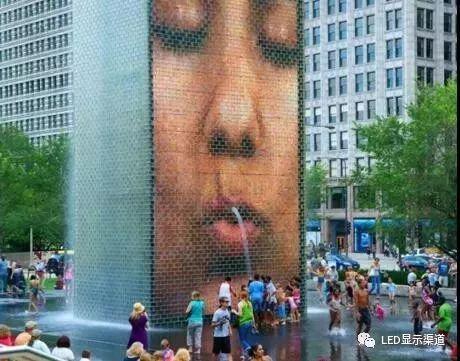 比如芝加哥的皇冠噴泉地標廣告,兩側(cè)15米高的led顯示屏,可展示內(nèi)部臉部的數(shù)位影像。這些人臉有時候微笑,有時候就會朝外面“吐水”。這種傳統(tǒng)與現(xiàn)代藝術(shù)的交織詮釋了這個項目的成功。
