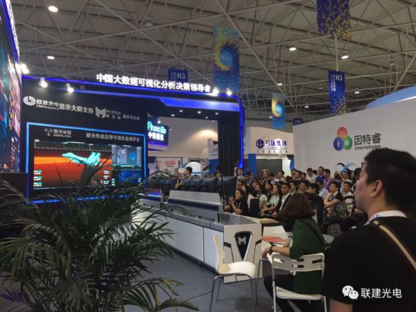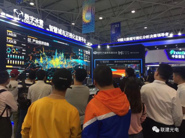 5月26-29日以“數化萬物 智在融合”為年度主題的2018中國國際大數據產業博覽會在貴州啟航,聯建光電作為led大屏幕可視化領域的領頭羊攜手合作伙伴在現場打造的高分可視化解決方案的演講吸引了大批觀眾駐足,貴陽市領導也親臨現場觀看,并對大數據可視化顯示表現出了濃厚的興趣。