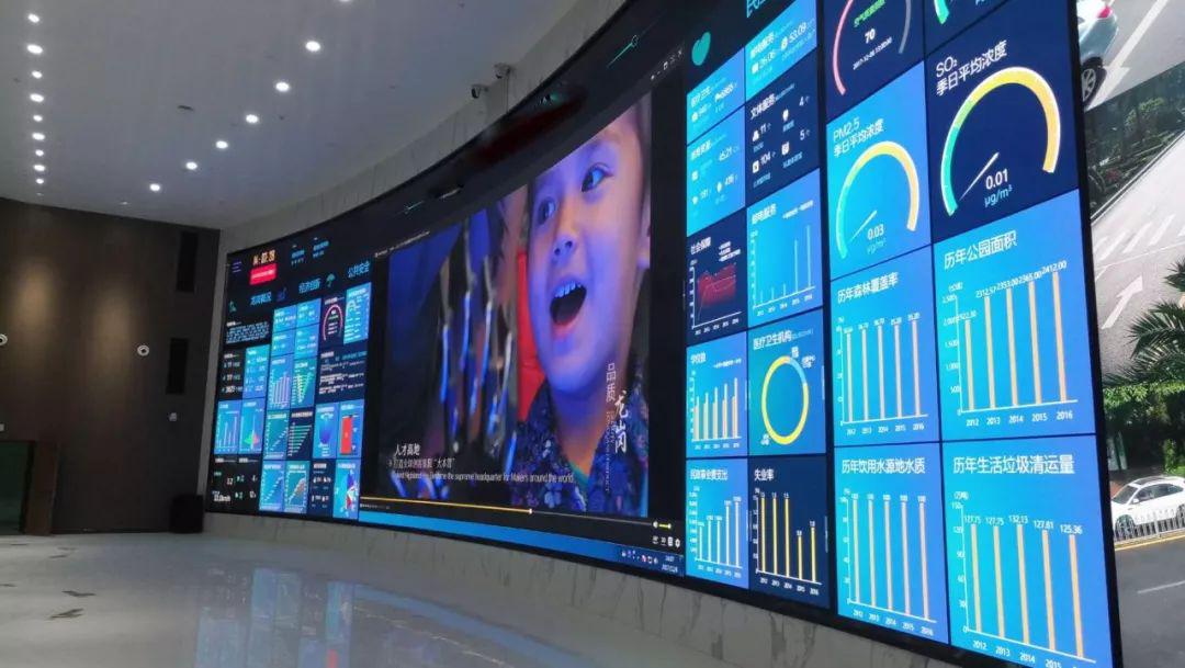城市運行管理系統”作為智慧城市大腦最重要的子項目之一。由艾比森與華為聯袂打造,一整塊面積達166.9平方米,間距低至1.27mm,總像素超過1.03億點的小間距LED顯示屏,超大弧度的精準拼裝,將艾比森的顯示系統綜合設計能力、LED屏生產制造能力和工程服務能力,完美地呈現。