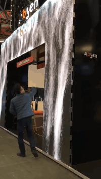 為了讓觀眾在一天辛苦的參展過程中增加一些趣味,艾比森在現場將led顯示屏與互動系統完美結合,當人經過屏幕時,畫面會隨著人的走動而發生變化,令現場觀眾興趣盈然,一試再試。