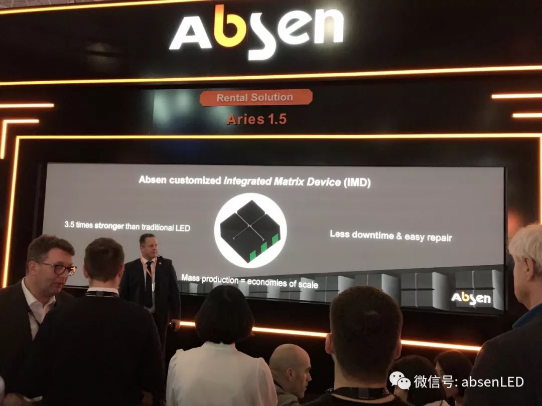 這一次艾比森刷新往年記錄,帶來了創新的技術IMD,展出的產品共計18款,涵蓋了戶外廣告解決方案、租賃解決方案、零售解決方案、控制室解決方案、體育領域解決方案以及Absenicon高端會議室解決方案等,是艾比森史上展出解決方案最全的一次,并在2月5-7日11:00-11:30和16:00-16:30進行多輪產品宣講。