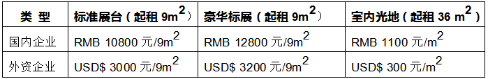 1)展位價格(申請截止日- 2020年7月1日 )注:雙面開口展位加收20%,18平米免收開口費!)