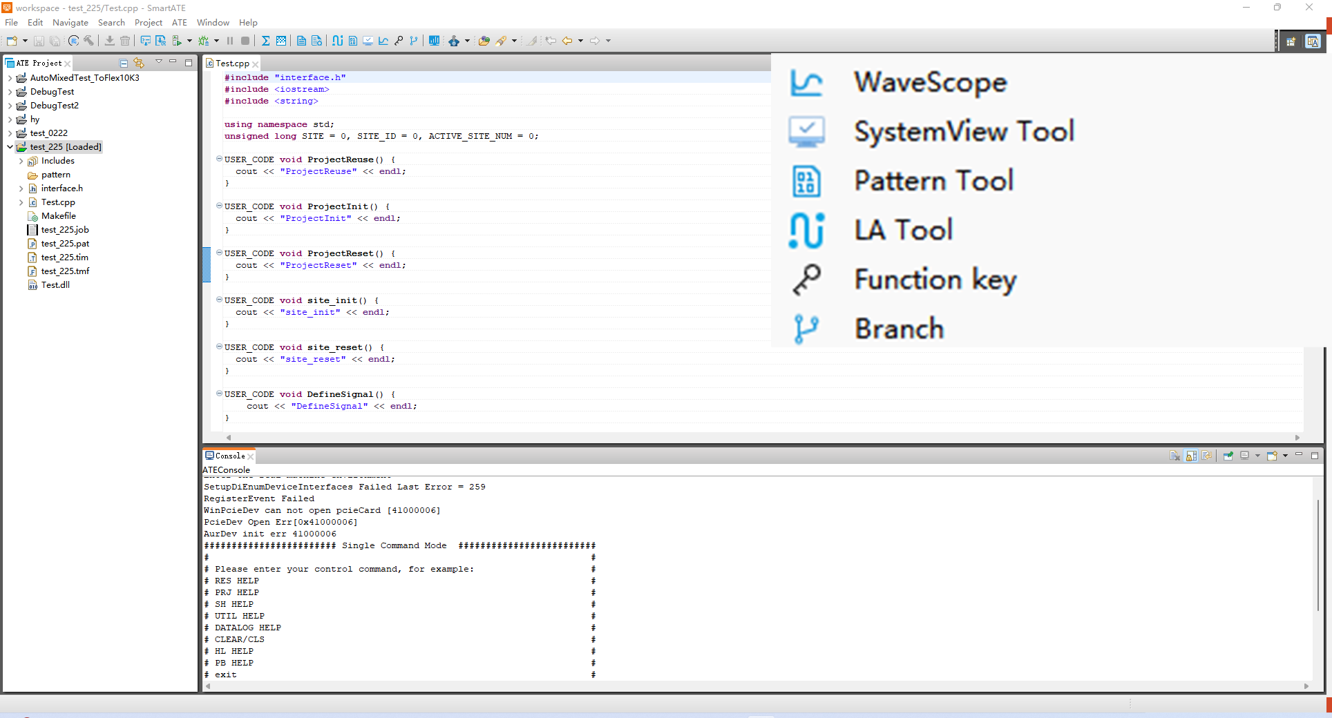 此外,配套的ATE軟件系統(tǒng)Flex-IDE,提供行業(yè)主流開發(fā)環(huán)境,且內(nèi)置豐富的開發(fā)和調(diào)試工具,方便客戶進(jìn)行測(cè)試程序高效開發(fā)調(diào)試。